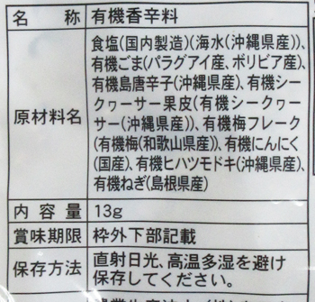 おきなわの有機七味唐辛子 青(平袋) 13g