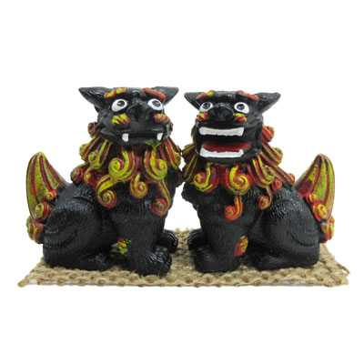 招福獅子(座)55mm ブラック/赤&黄(208-823)